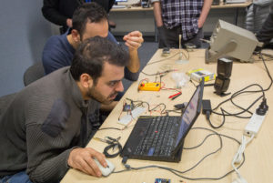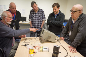 Luckily when a bunch of project enthusiasts get together, many of them bring their project boxes which are full of project bits. One of us had a microphone circuit which we could reliably create enough of a voltage spike so the Wemos board could interpret it as a balloon burst.